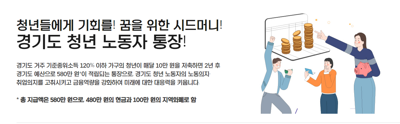 청년들에게 기회와 꿈을 주기 위한 시드머니를 만들 수 있는 좋은 기회가 있습니다. 경기도 청년 노동자 통장입니다.