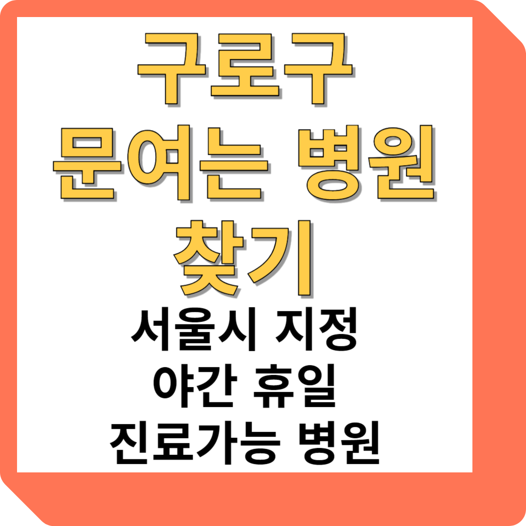오늘은 구로구 문여는 병원 찾기, 서울시 지정 야간 휴일 진료가능 병원을 안내해 드리겠습니다.