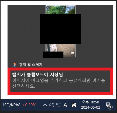 캡쳐 후 오른쪽 하단에 위와 같은 선택하신 화면의 그림이 생기고 표시한 곳을 클릭 하시고 저장하시면 됩니다.