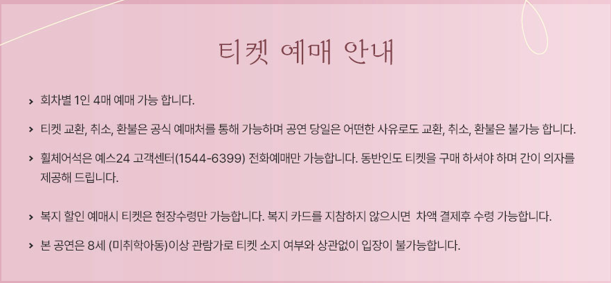 | 휠체어석(1인2매) | 10%할인 |