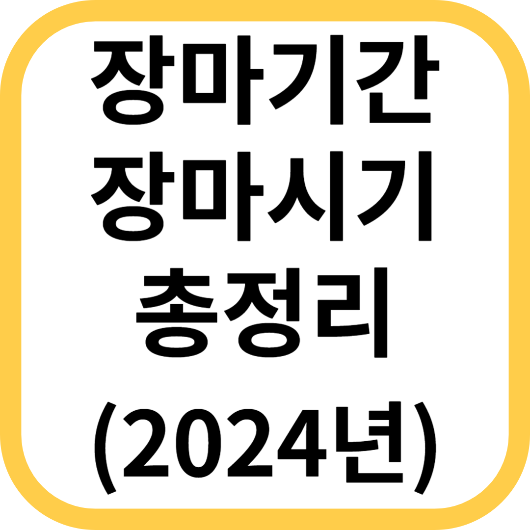 오늘은 장마기간 장마시기 총정리 (2024년)을 해보았습니다. 여름도 휴가도 좋지만 무엇보다 장마철 피해가 없어야 합니다. 이번 여름에는 비 피해 입으시는 분 없이 건강하고 즐거운 여름이 되기를 바랍니다.