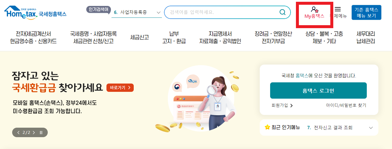 2. MY 홈택스 클릭